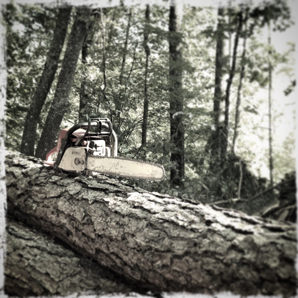 Sam lowered the saw he’d been trying to start and shot mock daggers at Darrell from under the brim of his baseball cap before glancing over at me and explaining: “Darrell’s a Husqy man.” (A pause.) “But I let him work for me anyways,” Sam finished with a smirk of his own.